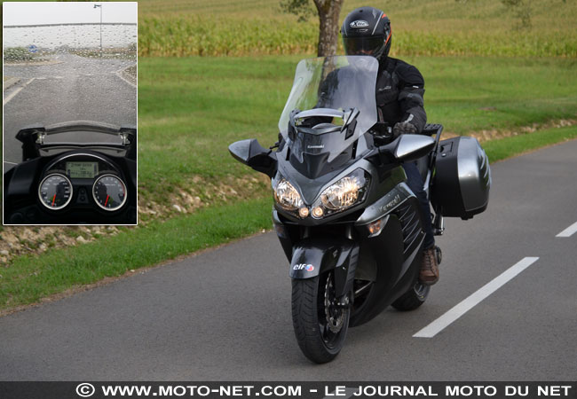 Mais il manque toujours quelques centimètres au pare-brise pour préserver efficacement : le haut du casque d'un conducteur d'1m75 reste exposé aux turbulences, comme sur la version 2010. Dommage, car le reste du corps est parfaitement abrité : MNC a pu le vérifier sous une pluie battante, bien installé sur cette moto confortable et dotée de série de précieuses et effaces poignées chauffantes !