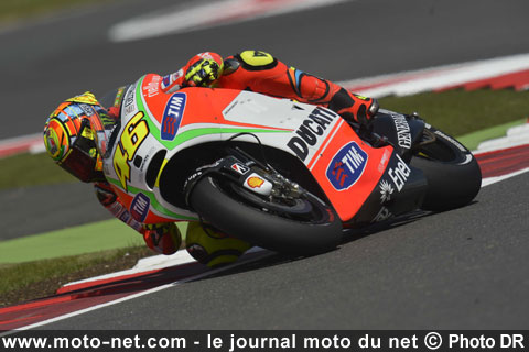 Jamais dans le coup sur le sec, le Docteur a temporairement fait illusion sur piste mouillée vendredi matin avant de rentrer dans le rang. En qualifications, la Ducati n°46 se fait mettre 2,113 secondes dans la vue par la Honda de Bautista ! Et pourtant, ce n'est pas faute d'essayer : Rossi est parti deux fois à la faute, dont une fois assez lourdement, en tentant de forcer le train avant de la capricieuse Ducati.