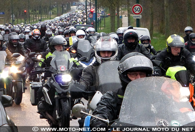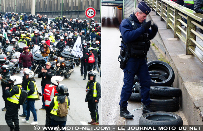Jean-Marc Belotti, courageux coordinateur de l'antenne parisienne de la FFMC, rappelle aux médias généralistes les arguments contre cette mesure, puis les motards s'élancent en direction de la tour Eiffel, suivis par quelques automobilistes... et encadrés par une dizaine de fourgons de CRS !
