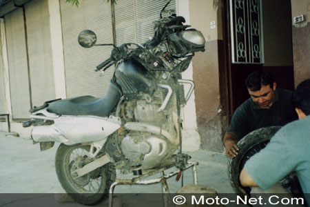 L’essentiel c’est de ne pas prendre trop de bagages : il faut sélectionner chaque chose impitoyablement. Pour de grands voyages, il n’y a rien de tel qu’une bécane simple et légère, facile à pousser et à dépanner. A l’opposé, la puissance et les performances ne servent pas à grand chose dans les conditions dans lesquelles on est amené à rouler. Pour être honnête, je n’ai jamais manqué de puissance !