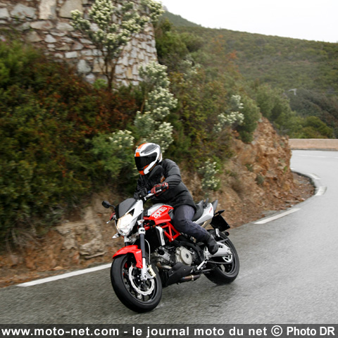 Or force est de constater que désormais, la connexion "poignée - roue arrière" est directe et sans parasite ! Comme sur la Dorsoduro Factory essayé précédemment, le mode T (pour "Touring") se montre de loin le plus agréable à utiliser : les reprises peuvent être douces ou plus musclées selon l'envie.