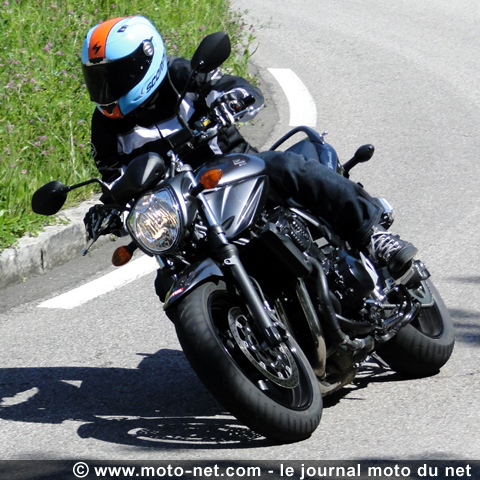 Les suspattes de la Bandit 650 sont plus souples encore que celles de la Yamaha. Leur enfoncement plus marqué au freinage et à l'accélération réclament donc une conduite plus "à l'ancienne". On (ré)apprend à enrouler les virages et à anticiper les réactions de sa bécane en fonction de ses propres actions.