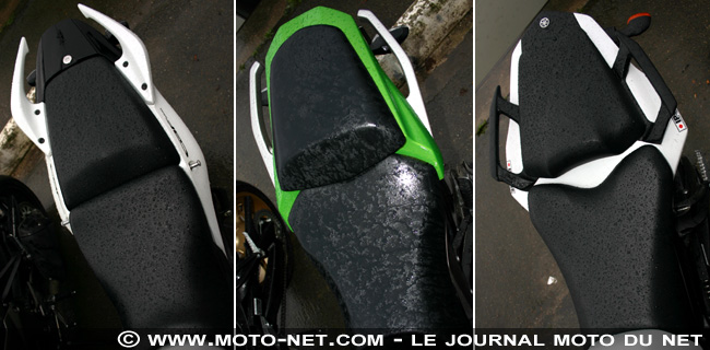 "Caractéristique" donc, la posture du pilote sur la Fazer n'est pas sans évoquer celle d'un culturiste bodybuildé. Elle conviendra aux amateurs du genre, mais les gros rouleurs lui préfèreront sans doute celle plus reposante de la Honda, voire celle de la Kawasaki.
