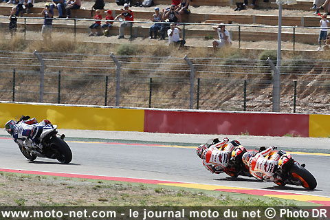 D'abord les victoires de Rins en Moto3 puis de Terol en Moto2 pour mettre en appétit les 60 000 spectateurs, puis le "plat de résistance" : la lutte entre l'infernal trio espagnol "Marquez-Lorenzo-Pedrosa" (lire notre compte rendu de la course MotoGP à Aragon) !