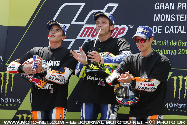 "A la fin j'étais prêt pour la bagarre, ce fut une belle baston avec beaucoup de dépassements et j'étais prêt à tenter ma chance. Je pense qu'on ne pourrait pas espérer faire une meilleure course. C'est l'un de mes circuits préférés mais je n'avais pas gagné ici depuis 2009 (au terme d'une superbe bagarre avec Lorenzo, NDLR), ça n'était pas génial pour moi... C'est pourquoi je suis si heureux aujourd'hui. On peut mettre ma bataille avec Marquez au même niveau que celle avec Lorenzo. Ce qui s'est passé au Mugello est très triste car j'étais prêt à me battre pour la victoire, ça aurait été fantastique. Cette semaine j'espérais être aussi bien préparé en arrivant ici. On a fait un excellent travail avec mon équipe et je pense que c'est le meilleur moyen d'oublier le résultat blanc du Mugello".