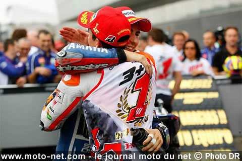 Jorge Lorenzo, très véhément et critique, se positionne lui aussi contre son coéquipier, allant même jusqu'à brandir un pouce vers le bas au moment où Valentino Rossi reçoit sa coupe avant de quitter le podium. Adieu les rapports cordiaux entre le n°46 et le n°99...