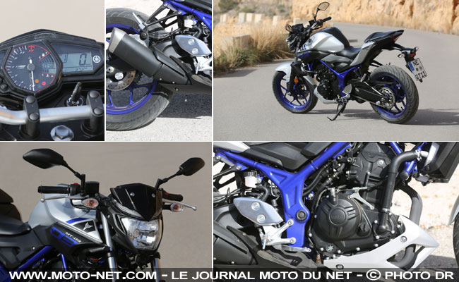 Jantes alliage à cinq branches dédoublées, silencieux d’échappement, réservoir d’essence de 14 litres, système de freinage ABS non déconnectable, selle biplace à deux niveaux, position des repose-pieds : toutes ces équipements découverts sur la R3 sont repris à l’identique sur la MT-03. Un partage de plate-forme déjà opéré par Yamaha dans sa gamme "MT" avec la MT-125, calqué sur la sportive YZF-R125.