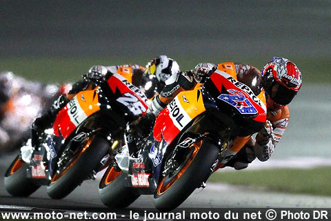 Enfin ! Après des mois d'attentes interminables et de pronostics enfiévrés, le coup d'envoi de la saison Moto GP 2011 a été donné hier soir sur le circuit du Qatar ! Sans véritable surprise, les Honda et Lorenzo sont déjà au rendez-vous tandis que Stoner s'est livré à une véritable démonstration sur "ses" terres qataries (lire nos Résumés des courses Moto GP, Moto2 et 125 au Qatar) !