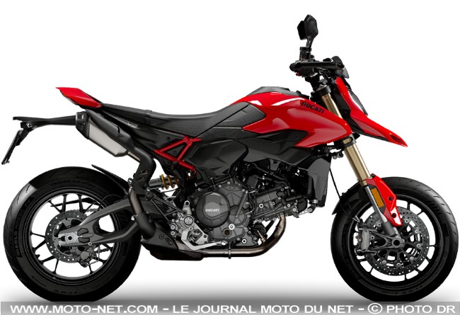 - En bref : L'hypermotard 950 cède la place à l'Hypermotard V2 pour 2026, avec la nouvelle plateforme articulée autour du récent bicylindre en V de 890 cc. Son cadre monocoque en alu et son bras-oscillant sont ainsi calqués sur les autres "V2" : Monster, Panigale, Streetfighter et Multistrada. L'Hypermotard standard est en suspensions Kayaba et jantes moulées, quand sa luxueuse déclinaison SP roule en Öhlins et en roues forgées. L'Hypermotard SP justifie aussi ses 4000 euros supplémentaires (!) par des Brembo M50 contre des M4.32 sur la standard.