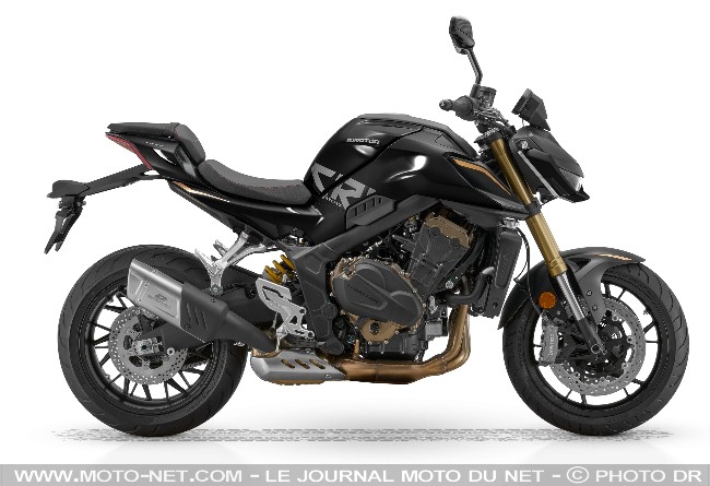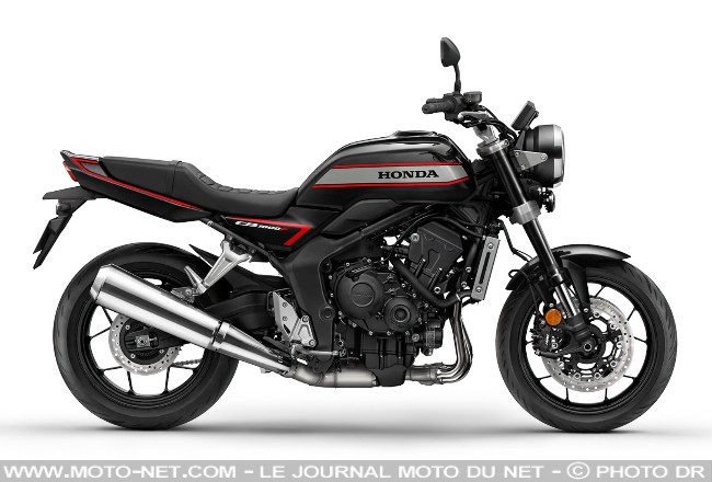 - En bref : Honda revisite son passé - et sa Big One" - sur la base de sa récente Hornet 1000. Son 4-cylindres de 998 cc est dégonflé de 28 ch, au profit de la disponibilité. On apprécie sa coque carrée et sa selle matelassée "à l'ancienne", mais on s'étonne de son écran TFT couleurs - tout sauf classique -, ses jantes à bâtons et sa fourche inversée plutôt sportive. La CB1000F embarque même une centrale à inertie (IMU) dont est dépourvue la Hornet ! Une est également prévue.