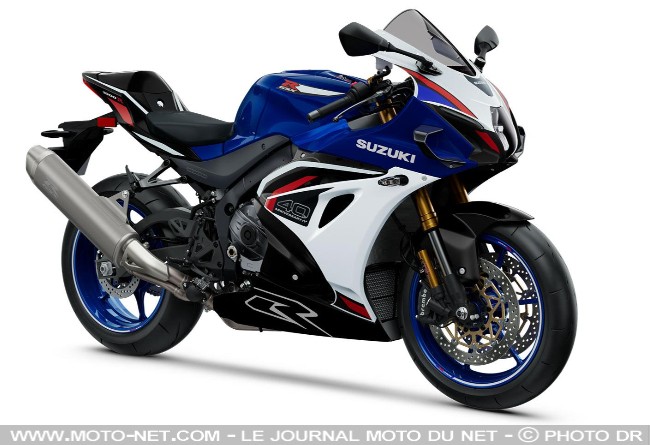 - En bref : La "Gex" revient au catalogue pour célébrer les 40 ans de la mythique saga via une édition spéciale qui reprend les coloris historiques de Suzuki : le tricolore GSX-R, le jaune et le rouge Grands Prix. Pour se plier aux normes Euro5+, le 4-cylindres perd 7 ch et 7,6 Nm malgré plusieurs évolutions (arbres à cames, injecteurs, pistons, soupapes...). La GSX-R1000 conserve une partie-cycle et une électronique identiques à celles de son retrait en 2021, mais intègre des ailettes pour se mettre à la page.
