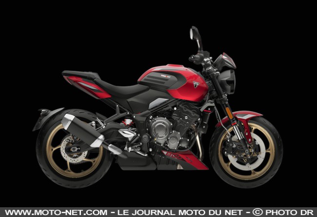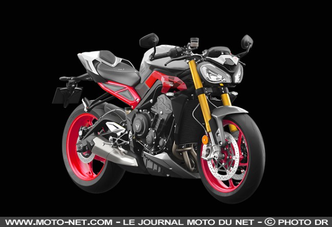 - En bref : Après la Speed Triple 1200 RX, c'est au tour de la Street Triple de s'associer au suffixe RX et à ses pièces "Racing" : fourche Öhlins NIX30, demi-guidons bracelets, selle spécifique et tés de fourche usinés subliment cette Street Triple RX. Elle conserve son amortisseur Öhlins STX40 et ses Brembo Stylema d'origine (la base est une RS), tandis qu'une édition limitée Moto2 y ajoute de l'habillage en carbone. Une Daytona 765 sans carénage, en somme !