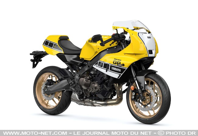 - En bref : La sportive vintage Yamaha, sur base de MT-09, reçoit une livrée jaune-blanche-noir qui renvoie aux coloris historiques des GP500 avec Kenny Roberts. Jusqu'aux jantes dorées qu'affectionnait le "Nain jaune" ! Aucun changement n'est apporté sur son 3-cylindres, son cadre alu, ses suspensions Kayaba ou ses étriers radiaux.