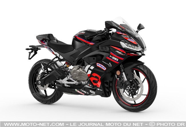 - En bref : La petite sportive d'Aprilia enfile la même robe que la RS-GP de MotoGP avec laquelle Marco Bezzecchi termine 3ème du championnat du monde. Son bicylindre de 457 cc est inchangé, de même que sa partie-cycle affûtée (cadre alu, fourcher inversée, étrier radial). Un shifter et des plaquettes de frein spécifiques agrémentent néanmoins cette "Réplica".