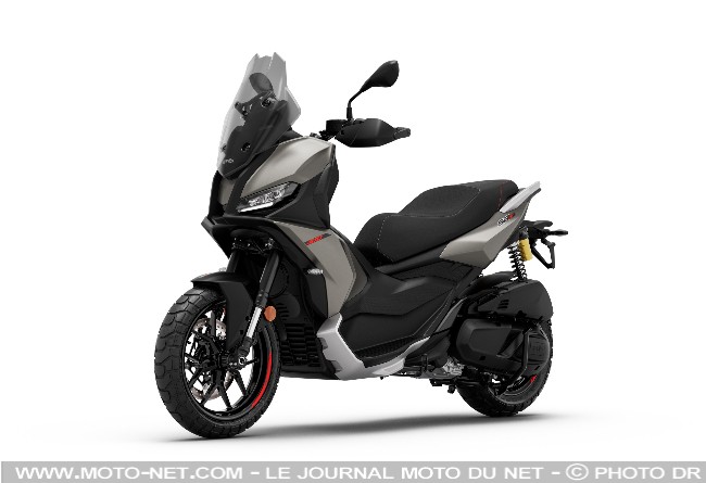 - En bref : Le SR450X - premier scooter "baroudeur" chez Voge - reçoit un bicylindre de 398 cc accessible sans bridage aux permis A2. Sa soute logerait deux casques, alors que poignées chauffantes et pare-brise électrique sont de série. Sa fourche inversée Kayaba entoure une grande roue avant (17") à rayons, alors des repose-pieeds escamotables autorisent la conduite debout. Instrumentation connectée, Keyless, contrôle de traction et vide-poche verrouillable sont inclus.