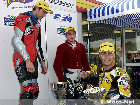 Vincent Eisen : J’ai pris le meilleur départ mais Detot m’a gêné dans le pif paf et je suis passé 5ème. Mon premier réflexe a été de rester sur mes roues, mais je n’ai pas aimé voir partir Aubry et Leblanc devant ! Ne pouvant pas revenir, j’ai cherché la 3ème place. Quand il a fait une faute à la parabolique, je savais que c’était le moment ou jamais car il serait moins incisif après une frayeur et je l’ai donc passé au freinage de Golf. J’ai mis du charbon pour le distancer, ce qui a bien marché, mais nous sommes revenus sur des attardés qui m’ont bouchonné et il a réussi à revenir. J’ai recommencé, j'ai repris des distances, mais j’ai de nouveau été freiné par un attardé et Rebuttini m’a à nouveau recollé ! Sachant que sa moto est plus puissante que la mienne, je me méfiais d’Hôtel (la dernière épingle avant l’arrivée, NDLR), mais comme me l’a dit Rebuttini après la course, j’étais meilleur au freinage et j’étais plus vite en courbe. J’ai franchi la ligne sans avoir vu que Leblanc était out, et j'ai alors découvert que j’étais 2ème ! C’est donc une super saison, un super résultat avec une moto en retrait en performances ! Pour Leblanc, c’est regrettable, mais j’ai eu mon lot de galères aussi, c’est la course...