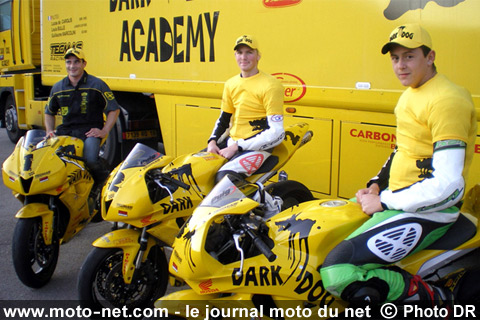 Depuis sa création en 2006 (lire Moto-Net.Com du 22 février 2006), la structure crée et gérée par l'emblématique Marc Fontan n'en finit plus de faire parler d'elle en championnat de France : outre une organisation de premier plan et un "sponsoring" digne de la catégorie reine, la Dark Dog Academy se distingue surtout par son professionnalisme et sa préparation physique et psychologique apportée à ses trois pilotes.