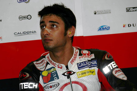 Sachant que Donington est "très exigeant, fatiguant et nécessite une forme à 100% pour l'affronter", Toni a donc préféré déclaré forfait ce week-end... Pour mieux revenir dans deux semaines ? Sans que cette information ait été confirmée par le team lui-même, il semblerait que Michel Fabrizio - pilote Honda en Mondial SBK - le remplace à l'occasion du GP de Grande Bretagne.