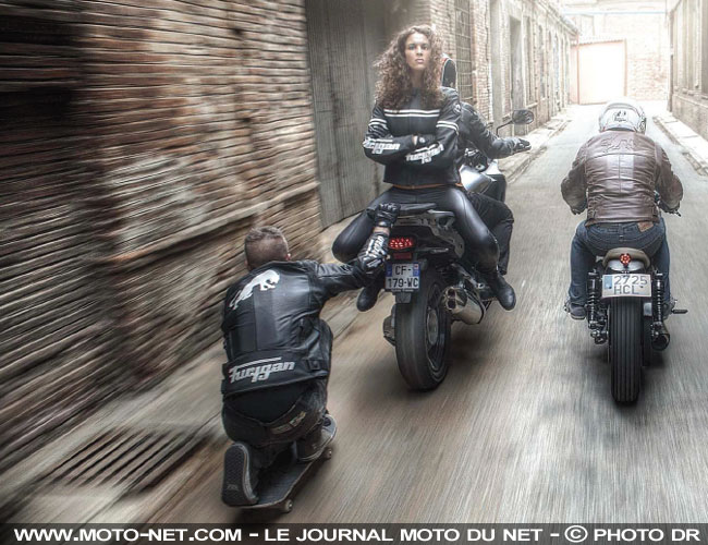 Depuis quelques années, le manufacturier français Furygan confie l'illustration de son catalogue d'équipements au photographe Dingo, dont l'une des spécialités est de mettre en scène la moto d'une manière artistiquement décalée (lire notamment MNC du 3 janvier 2011).