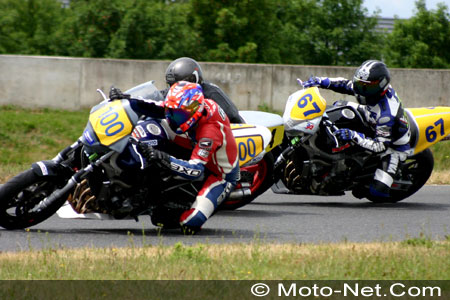 Les trois filles de tête creusent un écart conséquent sur le deuxième groupe, composé de Sandrine Martin (Honda 600 Hornet n°56), Marilyne Lafay (Suzuki SV650 n°5) et Carole Mancel (Suzuki SV650 n°29). Dans le reste du peloton suivent de courageuses débutantes sur piste, parmi lesquelles nos charmantes consoeurs de Sport Bike (Diane de Salve, n°13) et de Moto Journal (Elodie Lantelme, n°44).