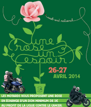 Ce week-end des 26 et 27 avril, plus de 10 000 motards vont sillonner les routes françaises. Objectif : collecter un million d’euros grâce à la distribution de roses, vendues 2 euros l'unité au profit de la Ligue contre le cancer.