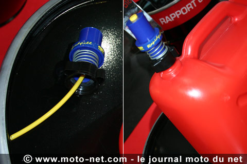 Élu : Le bouchon "Rapid'fill "de Pure-Pro. Cet embout de remplissage rapide permet de remplir son réservoir de moto sans l'aide d'un tiers ! Une fois le réservoir plein, le flux d'essence est stoppé net par un système de clapet. Il existe en trois versions : pour jerrican de 5 litres, 10 litres et bouchon à vis standard, pour un tarif compris entre 25 et 60€.