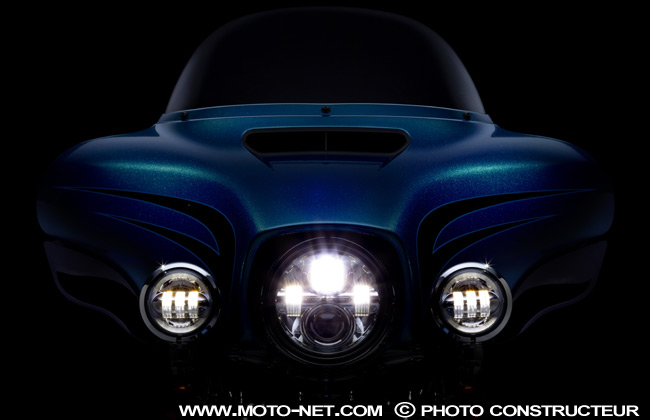 Enfin, dernières modification au rayon "Contrôle" : les Electra Glide Ultra Classic, Ultra Limited et Tri Glide Ultra Classic sont pourvus d'origine de l'éclairage à LED "Daymaker", tandis que les modèles Road King Classic et Street Glide reçoivent un éclairage halogène double "nettement plus performant qu’un phare halogène seul dans des situations de fort brouillard", promet-on à Milwaukee.