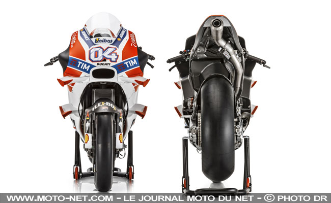 Autre changement d'importance : ce millésime 2016 marque la fin de l'appellation "GP" suivie du chiffre correspondant à l'année en cours (GP15 l'an passé), en vigueur depuis l'introduction de la Desmosedici en MotoGP en 2003 (GP3, donc). Désormais, les Ducati se nommeront "Desmosedici GP".