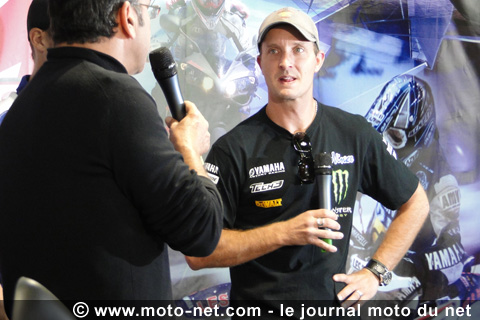 Tout juste descendus d'avion, les pilotes Yamaha en Moto GP Ben Spies et Colin Edwards sont allés saluer leurs fans à l'occasion des 30 ans de la concession Yamaha Les 2 Roues à Roissy. Moto-Net.Com en a profité pour les rencontrer. Interview.