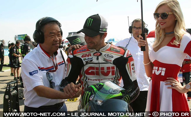 Présent sur la grille de départ pour encourager Crutchlow, Shuhei Nakamoto, le vice-président du HRC himself (troisième photo ci-dessous), ne semble pas non plus totalement insensible aux charmes de la souriante Marie-Luise...
