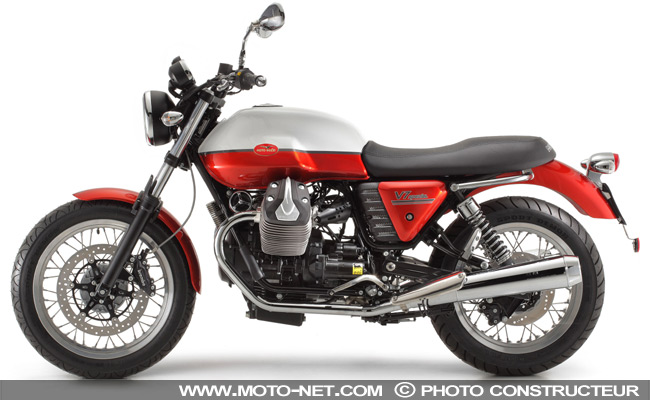 "Nous proposerons trois modèles en 2012 : la "V7" en entrée de gamme avec ses jantes à bâtons qui sera moins chère que l'actuelle Classic, la "V7 Special" qui jouera la carte du Vintage avec ses jantes à rayons et son coloris bi-ton, et la "V7 Sport" qui sera proche de la Racer 2011", nous résume le staff français.