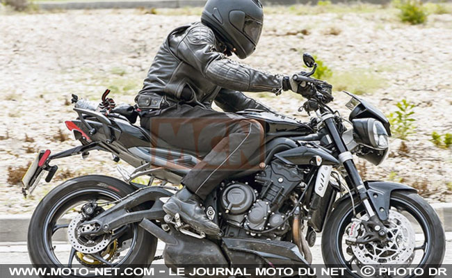 Pour contrer l'offensive menée par la MT-09, Triumph s'apprête à booster sa Street Triple de 675 à 800cc. Cette nouvelle moto 2017 se déclinera en outre en quatre versions plus ou moins équipées : standard et R comme actuellement, mais aussi RT et RS qui nourrissent des ambitions routières. La première photo volée de cette moto circule déjà sur le web...