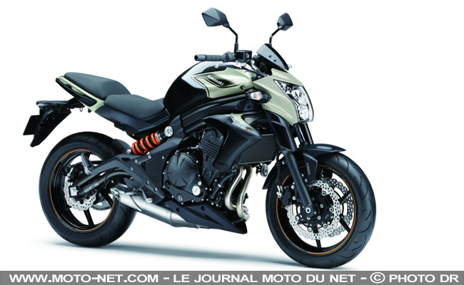 Pas de refonte en vue pour le très apprécié roadster Kawasaki ER-6n et sa déclinaison routière f , mais des nouveaux coloris dont un rouge "cerise" très flashy sur la version F. Quelques retouches stylistiques sont aussi au programme pour ces millésimes 2016, comme une peinture biton sur le réservoir de 16 litres et des liserés de jantes.