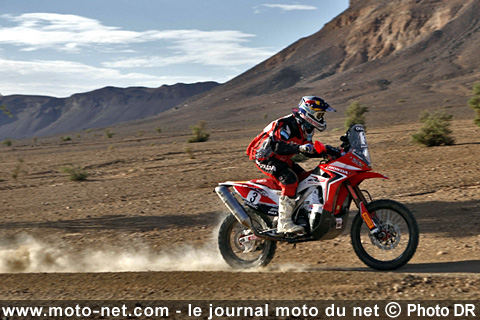 Les affaires avaient fort bien démarré pour Honda : la toute nouvelle CRF 450 Rally avait réussi à s'imposer dès sa toute première sortie ! Plus fort encore : la CRF n°3 possédait une avance de 11 minutes sur la KTM de Despres à l'issue du troisième jour.