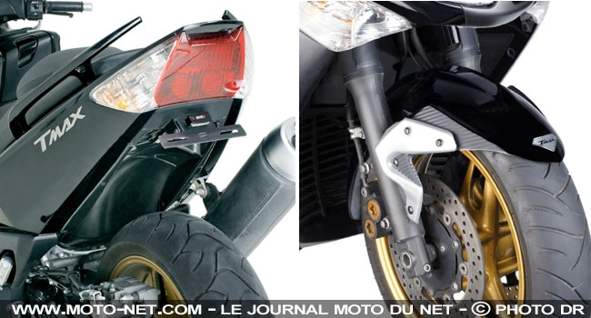 Enfin, il est possible d'habiller le train avant de son TMax via des garde-boue stylisés (191,21 euros en version noire, 207,44 euros en version carbone). Plus d'informations, contact et points de ventes sur le site officiel Puig (traduit en français).