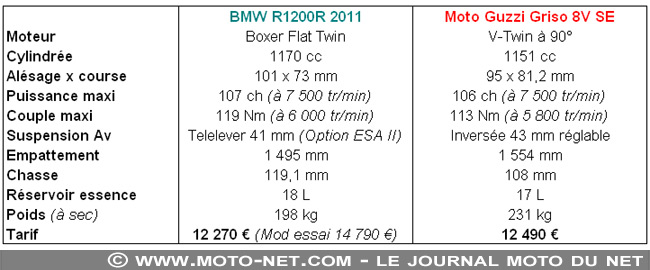 Certains préjugés ont la vie dure... En opposant la nouvelle R1200R et la Griso 8V SE, Moto-Net.Com souhaitait éviter les clichés attribués aux produits germaniques et transalpins. C'est loupé : BMW et Moto Guzzi entretiennent leurs réputations ! Duel.