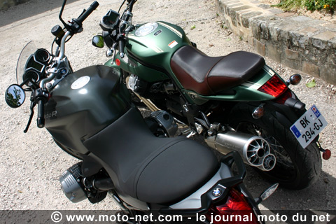 En ce qui concerne les aspects pratiques justement, la BMW accepte tout juste de loger un petit bloc-disque sous sa selle contrairement à la Guzzi qui s'avère être pleine comme un oeuf. Quatre ergots placés sur la boucle arrière de la Griso permettent toutefois d'arrimer un sac. La R1200R en est dépourvue. Match - très - nul entre ces deux roadsters, donc...