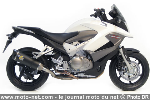 Le fabricant d'échappements LeoVince a développé un silencieux adaptable dans le but d'enjoliver les vocalises du V4 à distribution V-TEC de la récente Honda Crossrunner (lire notre Duel Honda Crossrunner Vs Yamaha 900 TDM ).