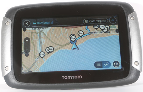 Destiné aux motards, le TomTom Rider s'avère plus résistant aux chocs qu'un modèle automobile et bénéficie d'une étanchéité de classe IPX7 (résiste à une immersion d'un mètre).