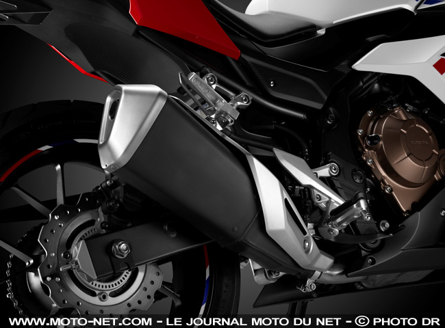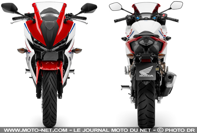 La petite sportive CBR500R accessible aux permis A2 (lire notre Duel MNC : la Honda CB5R00R face à la Kawasaki Ninja 300) adopte comme ses consoeurs un nouveau look plus agressif, un éclairage à LED, un plus gros réservoir (17,5 l au lieu de 15,7) et une fourche désormais réglable en précharge, ainsi qu'un échappement redessiné pour "mieux centraliser les masses" et améliorer sa sonorité.