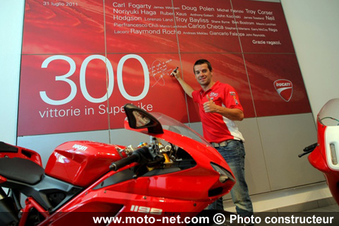 Désormais, le nom de Carlos Checa - qui n'a pas encore décroché le titre de champion du monde WSBK 2011, mais s'en rapproche course après course - figure en gras sur les murs de la firme bolognaise, aux côtés de ceux des rois Fogarty, Polen, Corser, Haga, Hodgson, Bayliss et Roche !