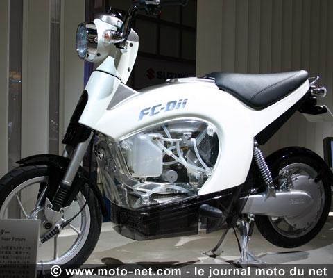 A l'image de ses confrères automobiles, Yamaha travaille aussi sur des moteurs à hydrogène (pile à combustible) avec le FC-Aquel et sur les énergies dites "douce" telles que le méthanol avec le FC-Dii, une évolution du FC-m présenté il y a deux ans.
