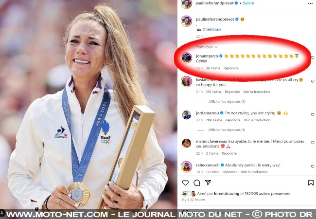 Johann Zarco et Aleix Espargaro félicitent aussi chaleureusement la rémoise sur ses réseaux sociaux. Pourquoi un tel intérêt envers le VTT ? Car beaucoup s'entraînent souvent en vélo ! Aleix Espargaro, notamment, possède un niveau semi-professionnel sur route. D'où leur sincère admiration devant la performance de "PFP" qui bétonne un palmarès exceptionnel avec cette première médaille d'or. Bravo et merci, Pauline !
