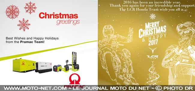 C'est au tour des équipes satellites Ducati-Pramac et Honda-LCR d'adresser leurs voeux de fin d'année 2016. Comme souvent, les employeurs de Danilo Petrucci et Scott Reddind (Pramac) et de Cal Crutchlow (LCR) en profitent pour remercier leurs fans... et faire un peu de réclame pour leurs sponsors !