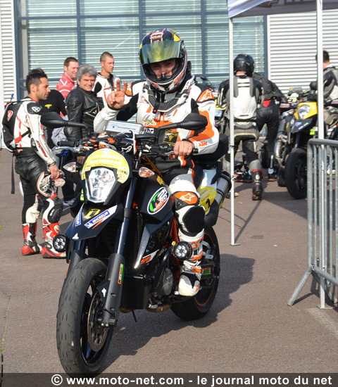 Il devance Mickael Porcu et son Husaberg 570 FS (3'36,17) et Florent Derrien sur KTM 690 SM (3'38,89). L'officiel KTM et pilote du Journal moto du Net se contentera ici du quatrième temps, quelques dixièmes derrière Florent (3'39,15).