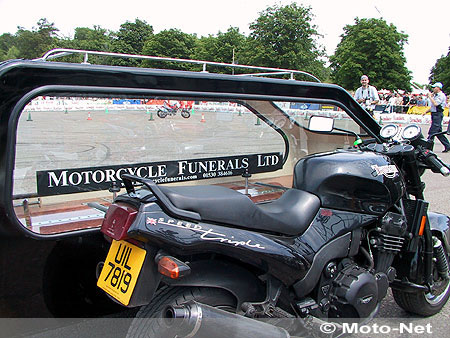 Un peu plus loin, de jeunes espoirs tournent dans le cadre de l'Autocycle Union Academy. Quelques passionnés avalent la poussière autour de la piste de grasstrack tandis que d'autres préfèrent s'envoyer une pinte de Guiness, ou déambuler dans les paisibles jardins de l'abbaye cistercienne, construite en 1204 par des moines français. En attendant la remise des prix par le lord himself, le gros des troupes arpente inlassablement les allées à la recherche de la bonne affaire, admirant au passage quelques bijoux de l'industrie motocycliste, parmi lesquels une Royal Enfield 3HP au guidon de laquelle PJ Walker termine 3ème au Junior TT de 1914 mais trouve la mort après la ligne d'arrivée, ou une Vélocette KTT MK8 350 cc de 1947 entièrement restaurée en 1994. Rendez-vous l'an prochain pour la 10ème édition, qui devrait être placée sous le signe de la France.
