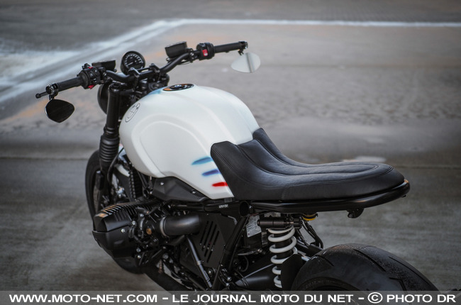 Le modèle d'origine utilisé ici est une R nineR Pure, mais cette transformation - homologuée - fonctionne aussi avec les variantes standard, Scrambler, Racer ou encore GS du roadster BMW. Cette R nineT M reçoit un guidon plat LSL qui se termine par des rétroviseurs inversés Motogadget. Sa nouvelle selle "maison" est par ailleurs moins volumineuse que l'origine.