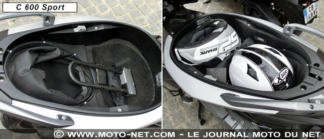 De même, si les deux vastes vide-poches du Béhème sont dépourvus de serrure, il est bon de savoir que celui de gauche se verrouille automatiquement lorsque la direction est bloquée. Ce même espace de rangement est en prime équipé d'une prise 12V (en option sur le Yam', de série mais dans le coffre sur le Honda).