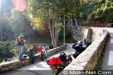Au départ de Marseille, le ferry nous emmène en une nuit jusqu'à Bastia. La soirée à bord est l'occasion pour les nouveaux venus de lier connaissance, pour les anciens de fêter les retrouvailles et pour tous de parler moto jusque tard dans la nuit ! Hervé, "Grand Organisateur" de l'événement, en profite pour nous donner quelques détails complémentaires sur le road-book. Au programme : cinq jours pleins de balades à travers les montagnes. De quoi bien user les pneus, surtout sur les flancs car les lignes droites sont plutôt rares !