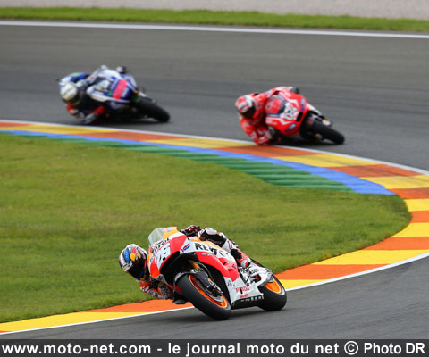 Reste qu'à domicile, Dani a de nouveau livré une course sans relief, certes dans le "bon wagon" mais pas en catégorie "première classe"... Ce dixième podium de la saison sauve néanmoins une fin de saison difficile, marqué par deux résultats blancs consécutifs en Australie (accrochage causé par Iannone) et en Malaisie (double chute de l'avant).